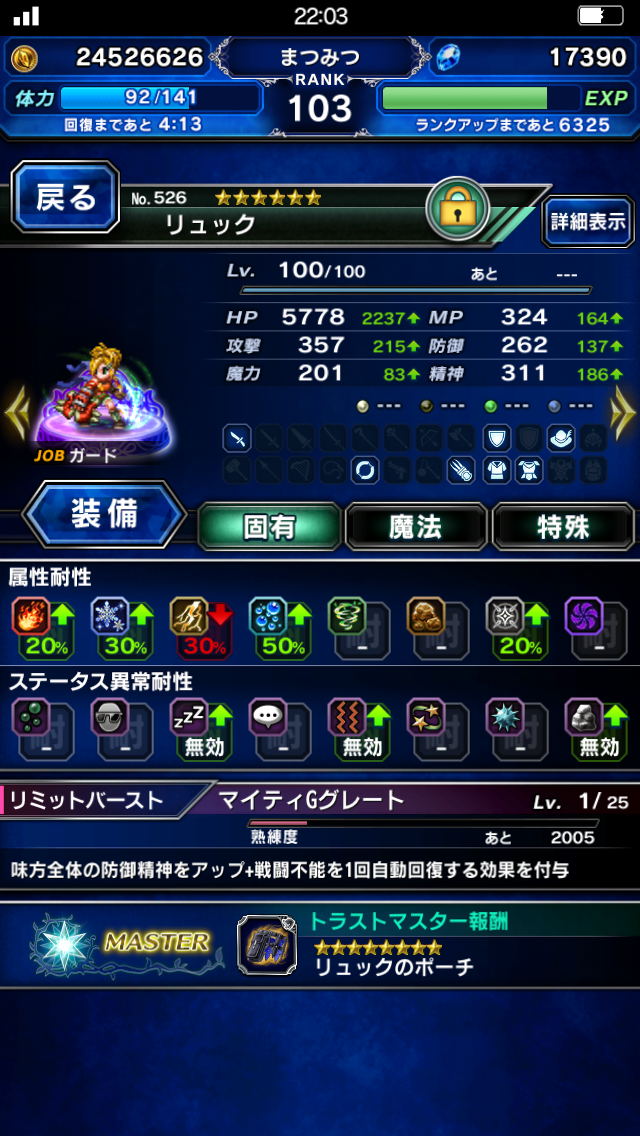 名前は、まつみつでやってて今Lv100くらい。
