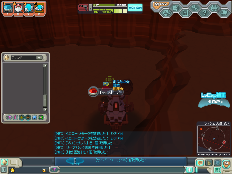 パーツが一式揃うまではD周回重視の雑魚無視ボス狙いでやってましたが、どうもHDが出る気配がなくBDとBSが溜まっていく一方なので、合成用のエンブレム集めで各階殲滅に切り替え。