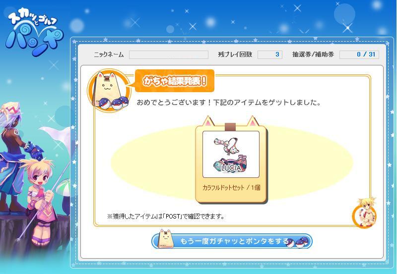 で、昨日ふとパニャのガチャを空回ししたら当たりモーションが連発し、今朝も気になって空回ししてみると依然と当たりモーションが出てきて・・・