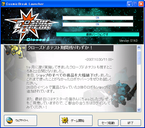 一応、新しいロボが販売されたりとCBのver.が更新されていたので、INしてみることに。。。
