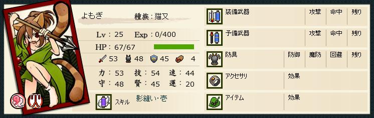術寄せいるし、反撃スキル外して攻撃スキルをもう一個載せるか、黒金までを見越すなら術寄せ・かわしに変えてもいいかもしれない。